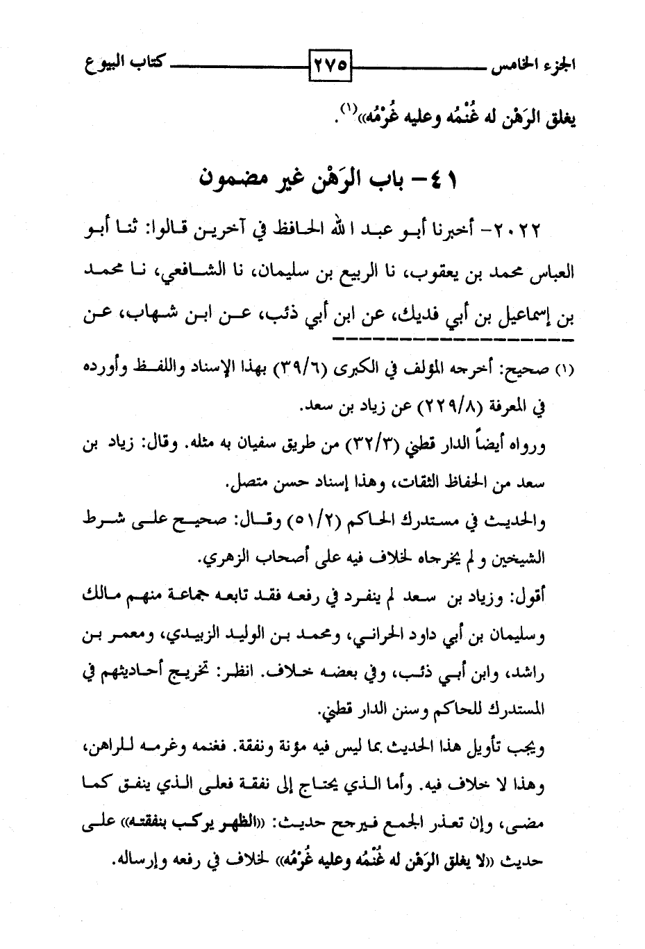 يغلق الرهن له غنمه وعليه غرمه ' ( 1 ) . 41 - باب الرهن غير مضمون