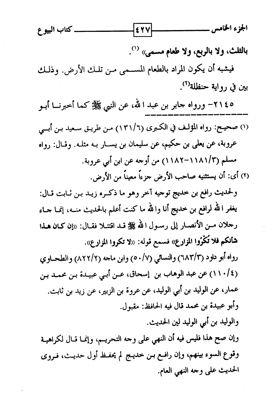 بالثلث ، ولا بالربع ، ولا طعام مسمى ' ( 1 ) . فيشبه أن يكون المراد بالطعام المسمى من تلك الأرض . وذلك بين في رواية حنظلة ( 2 ) .