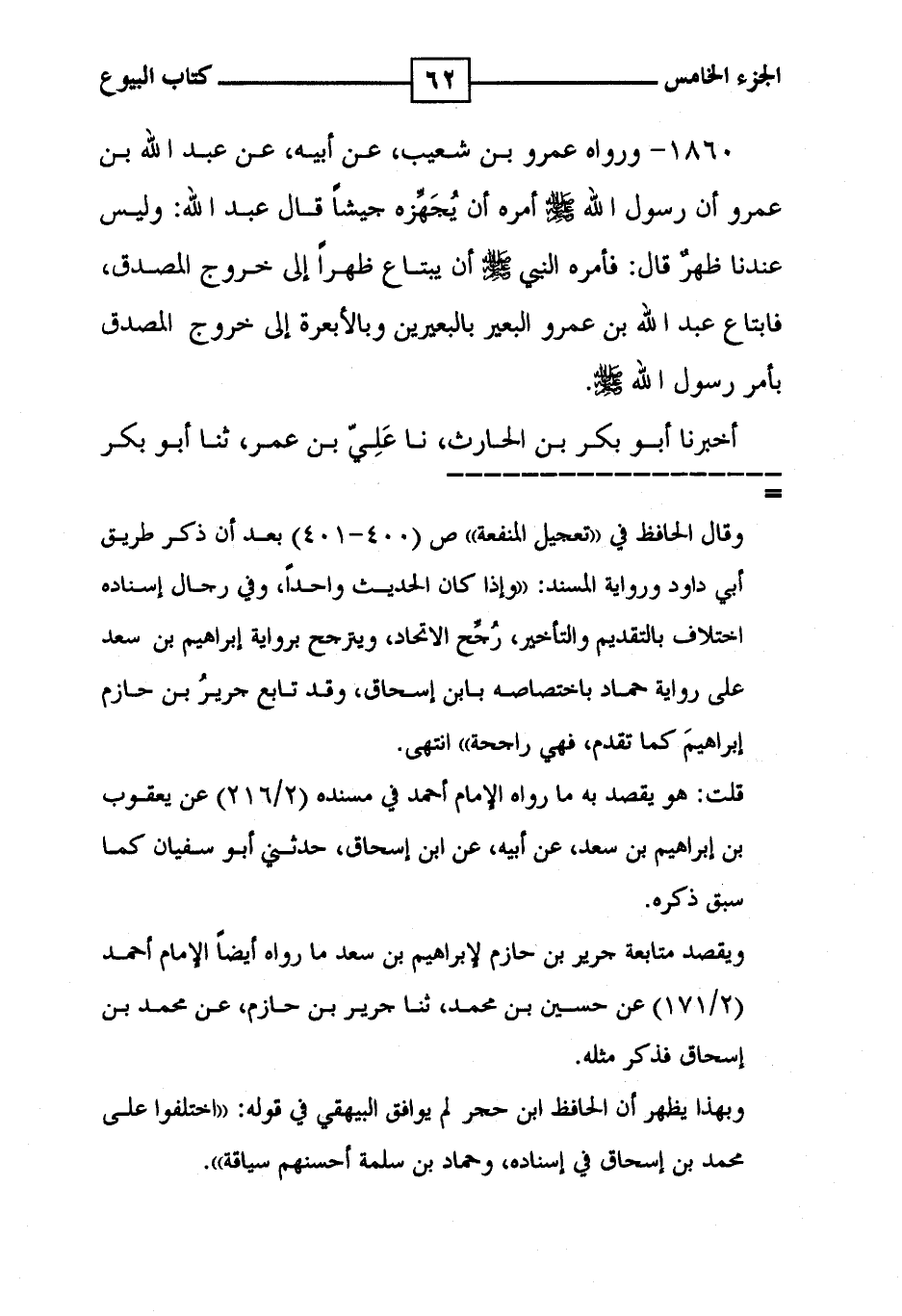 1860 - ورواه عمرو بن شعيب ، عن أبيه ، عن عبد الله بن عمرو أن رسول الله [ صلى الله عليه وسلم ] أمره أن يجهزه جيشاً قال عبد الله : وليس عندنا ظهر قال : فأمره النبي [ صلى الله عليه وسلم ] أن يبتاع ظهراً إلى خروج المصدق ، فابتاع عبد الله بن عمرو البعير بالبعيرين وبالأبعرة إلى خروج المصدق بأمر رسول الله [ صلى الله عليه وسلم ] . أخبرنا أبو بكر بن الحارث ، نا علي بن عمر ، ثنا أبو بكر