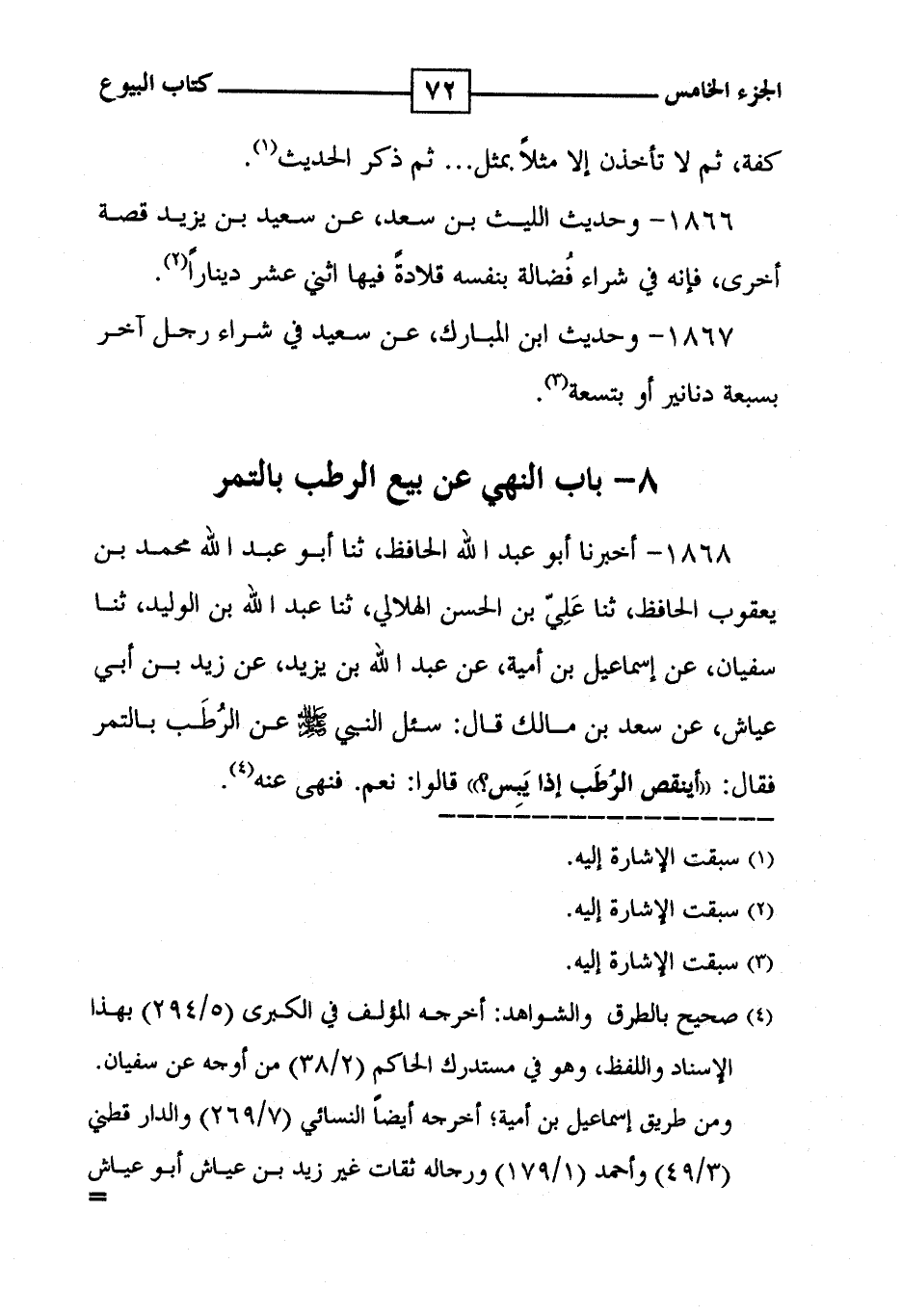 1867 - وحديث ابن المبارك ، ، عن سعيد في شراء رجل آخر بسبعة دنانير أو بتسعة ( 3 ) . 8 - باب النهي عن بيع الرطب بالتمر