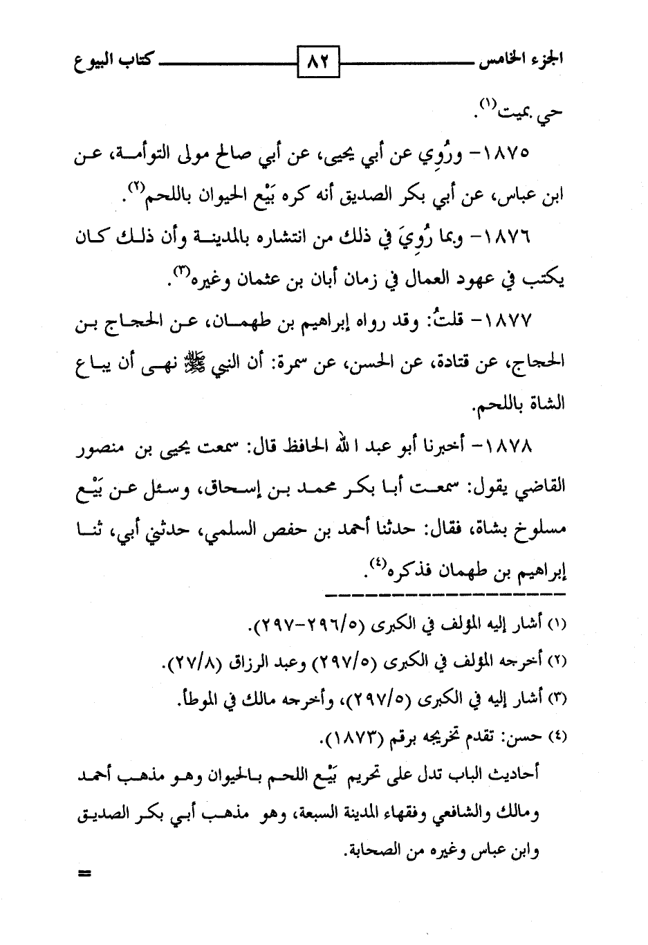 1875 - وروى عن أبي يحيى ، عن أبي صالح مولى التوأمة ، عن ابن عباس ، عن أبي بكر الصديق أنه كره بيع الحيوان باللحم ( 2 ) .