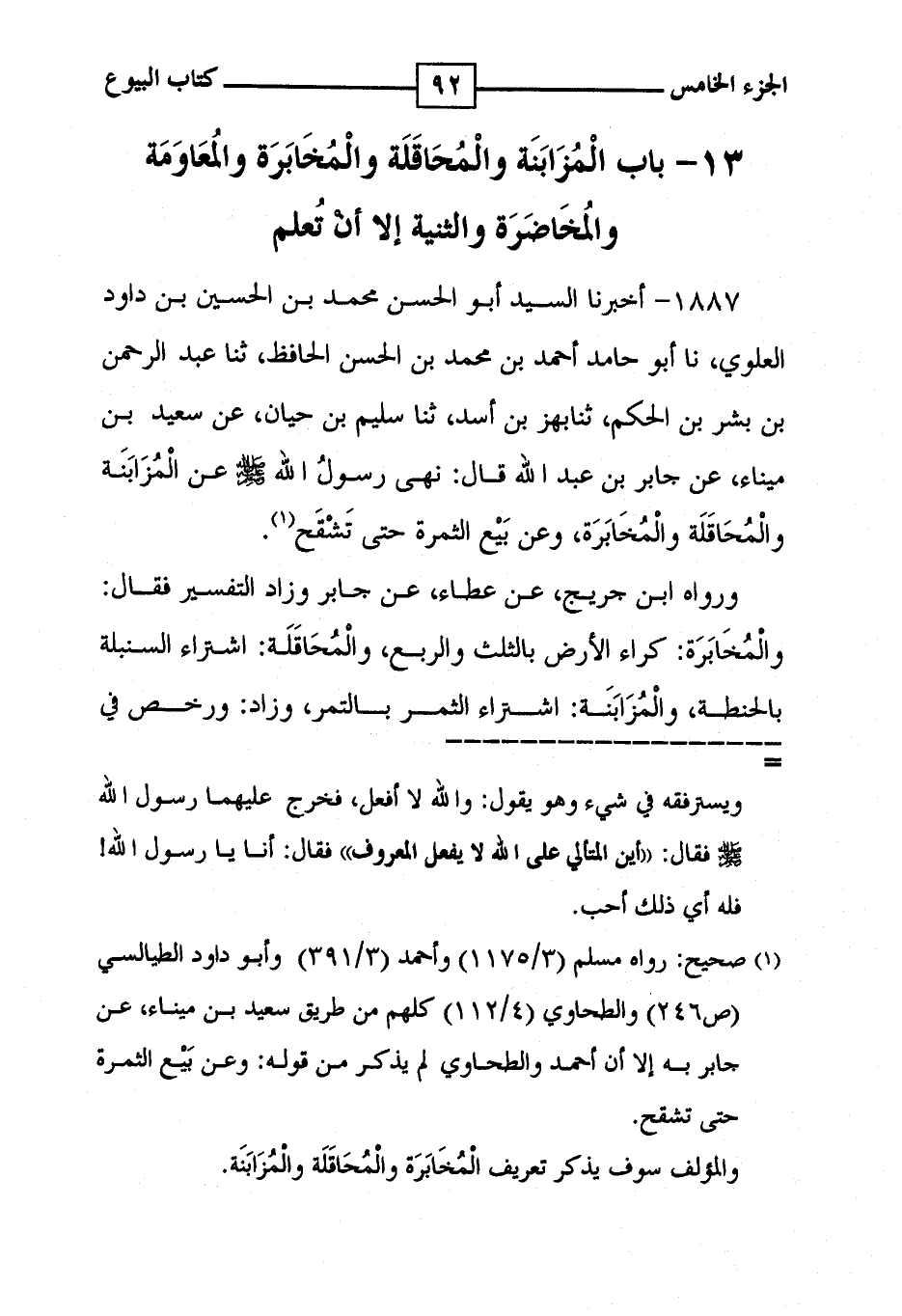 13 - باب المزابنة والمعاقلة والمخابرة والمعاومة والمخاضرة والثنية إلا أن تعلم