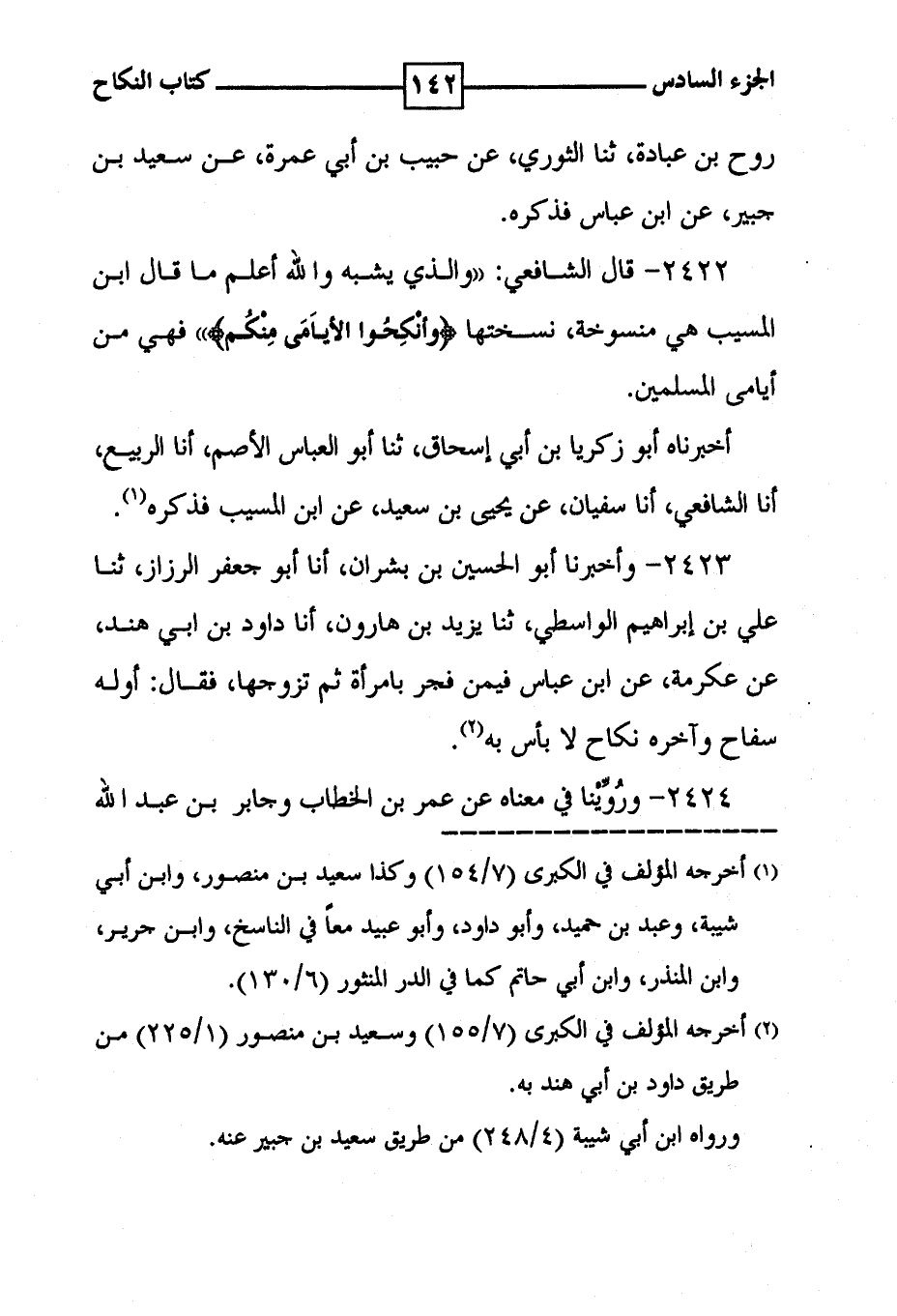 2422 - قال الشافعي : ' والذي يشبه والله اعلم ما قال ابن المسيب هي منسوخة ، نسختها ! ( وأنكحوا الأيامى منكم ) ! فهي من أيامى المسلمين . أخبرنا أبو زكريا بن أبي اسحاق ، ثنا أبو العباس الاصم ، أنا الربيع ، أنا الشافعي ، أنا سفيان ، عن يحيى بن سعيد ، عن ابن المسيب فذكره ( 1 ) .