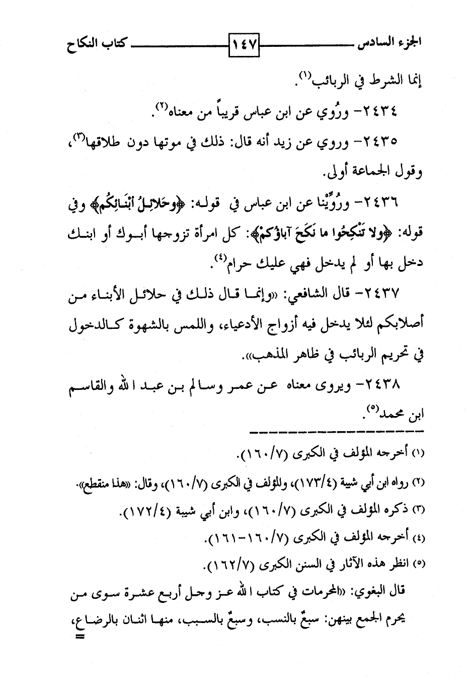 2438 - ويروى معناه عن عمر وسالم بن عبد الله والقاسم ابن محمد ( 5 ) .