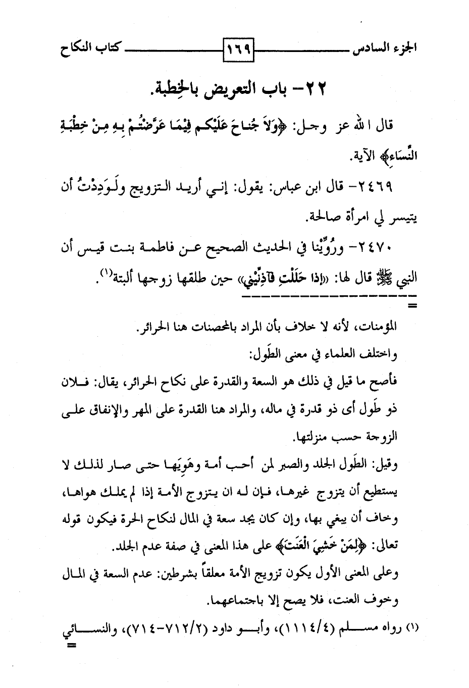 22 - باب التعريض بالخطبة قال الله عز وجل : ! ( ولا جناح عليكم فيما عرضتم به من خطبة النساء ) ! الآية .