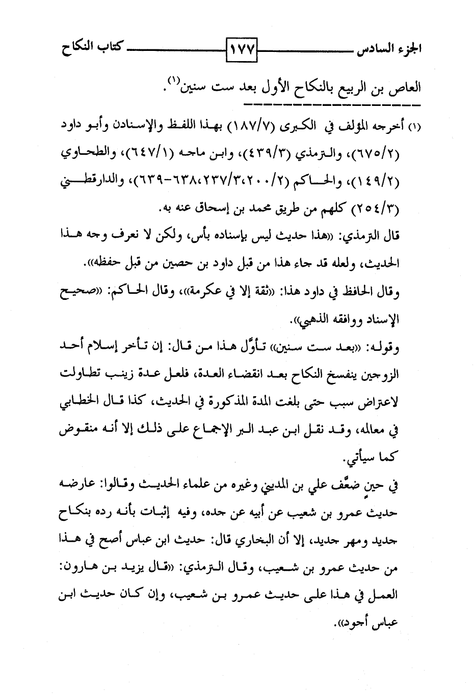 العاص بن الربيع بالنكاح الأول بعد ست سنين ( 1 ) .