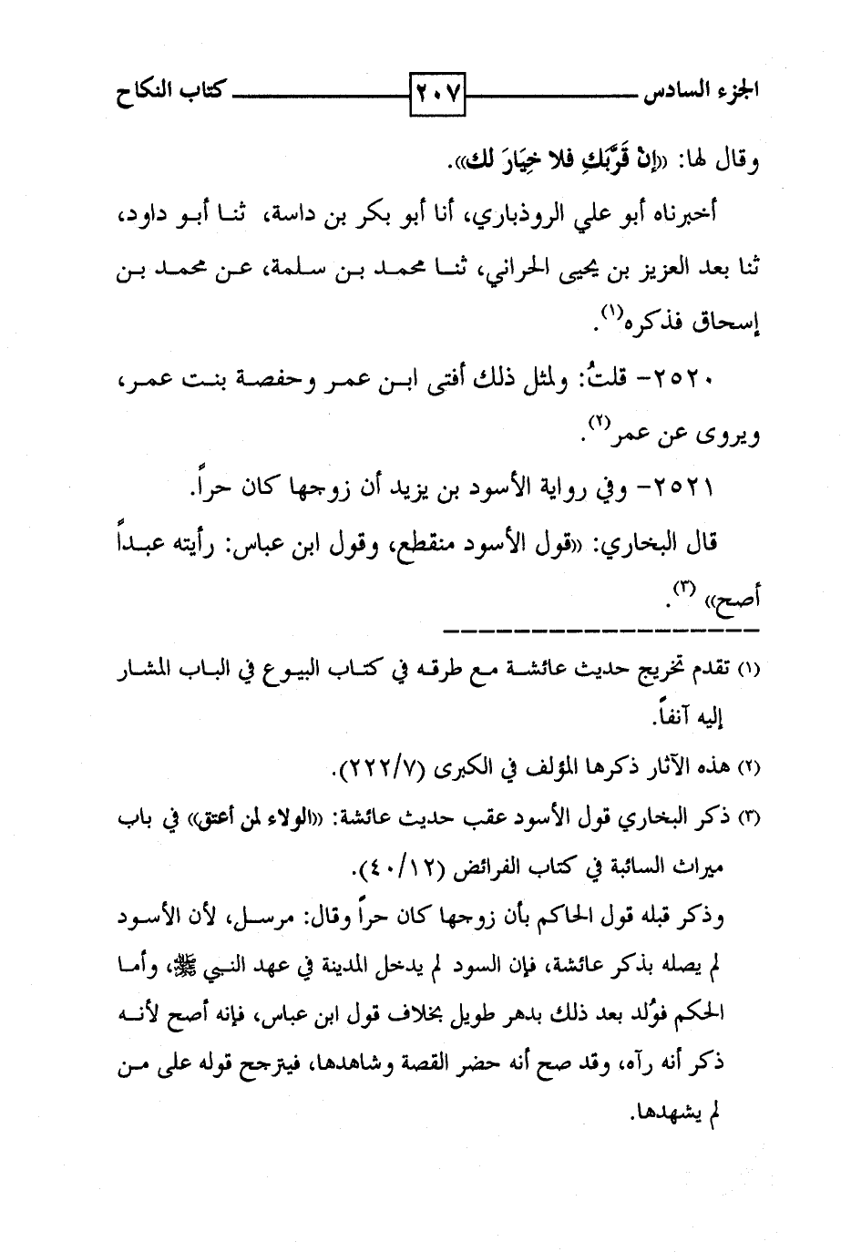2521 - وفي رواية الأسود بن يزيد أن زوجها كان حرا . قال البخاري : ' قول الأسود منقطع ، وقول ابن عباس : رأيته عبدا اصح ' ( 3 ) .