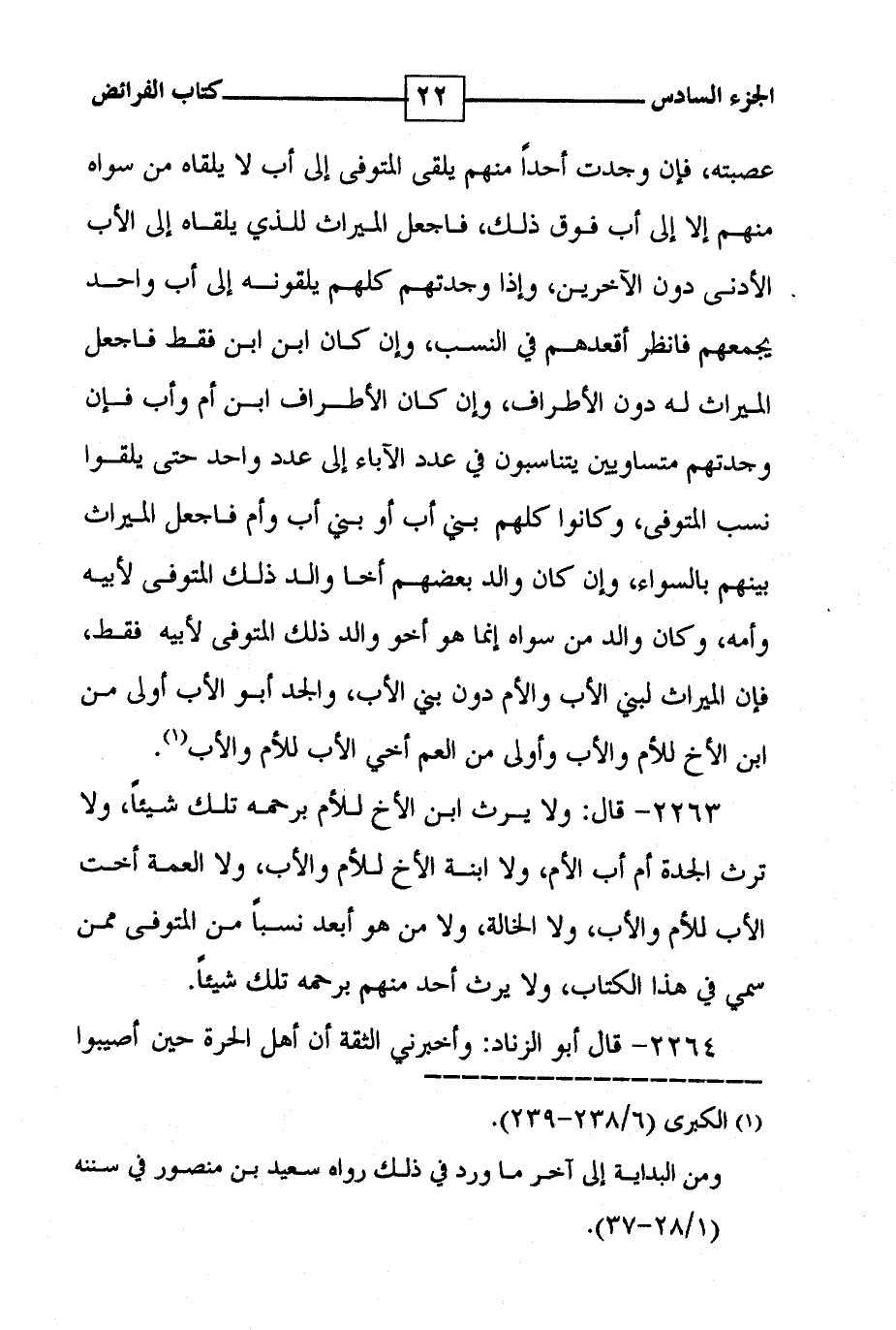 2263 - قال : ولا يرث ابن الأخ للأم برحمه تلك شيئا ، ولا ترث الجدة أم أب الام ، ولا ابنة الأخ للأم والأب ، ولا العمة أخت الأب للأم والأب ، ولا الخالة ، ولا من هو أبعد نسبا من المتوفى ممن سمي في هذا الكتاب ، ولا يرث أحد منهم برحمه تلك شيئا .