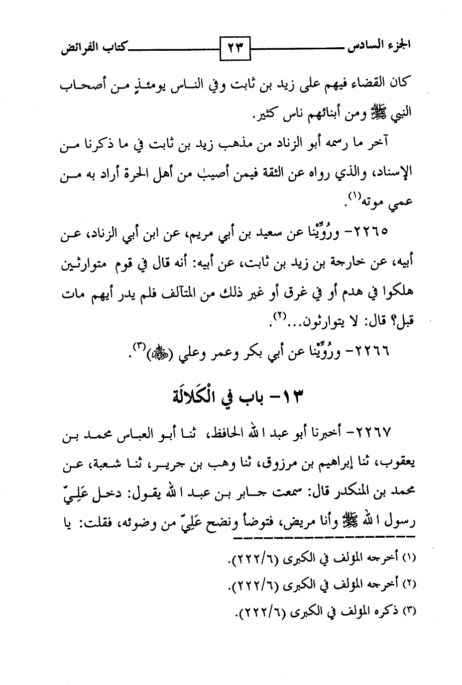 2266 - وروينا عن أبي بكر وعمر وعلي ( رضي الله عنه ) ( 3 ) . 13 - باب في الكلالة