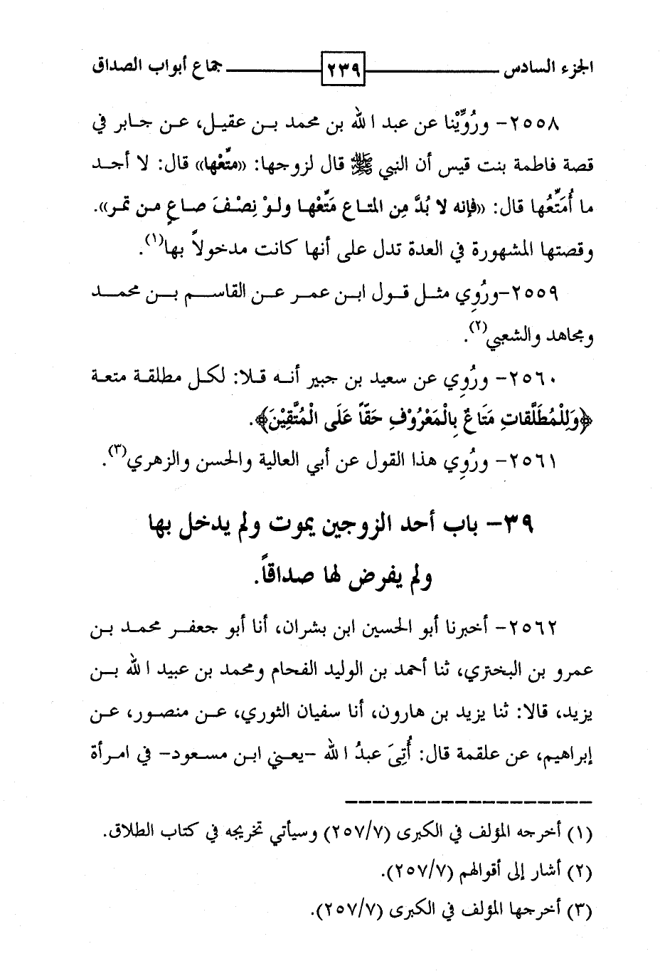 2560 - وروي عن سعيد بن جبير انه قال : لكل مطلقة متعة ! ( وللمطلقات متاع بالمعروف حقا على المتقين ) ! .