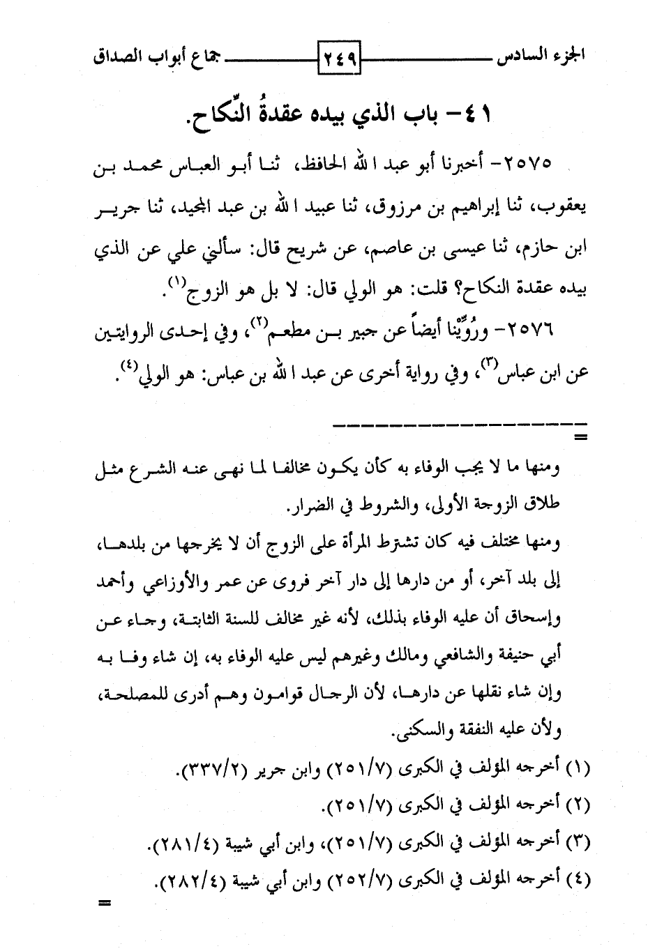 2576 - وروينا أيضا عن جبير بن مطعم ( 2 ) ، وفي إحدى الروايتين عن ابن عباس ( 3 ) ، وفي رواية أخرى عن عبد الله بن عباس : هو الولي ( 4 ) .