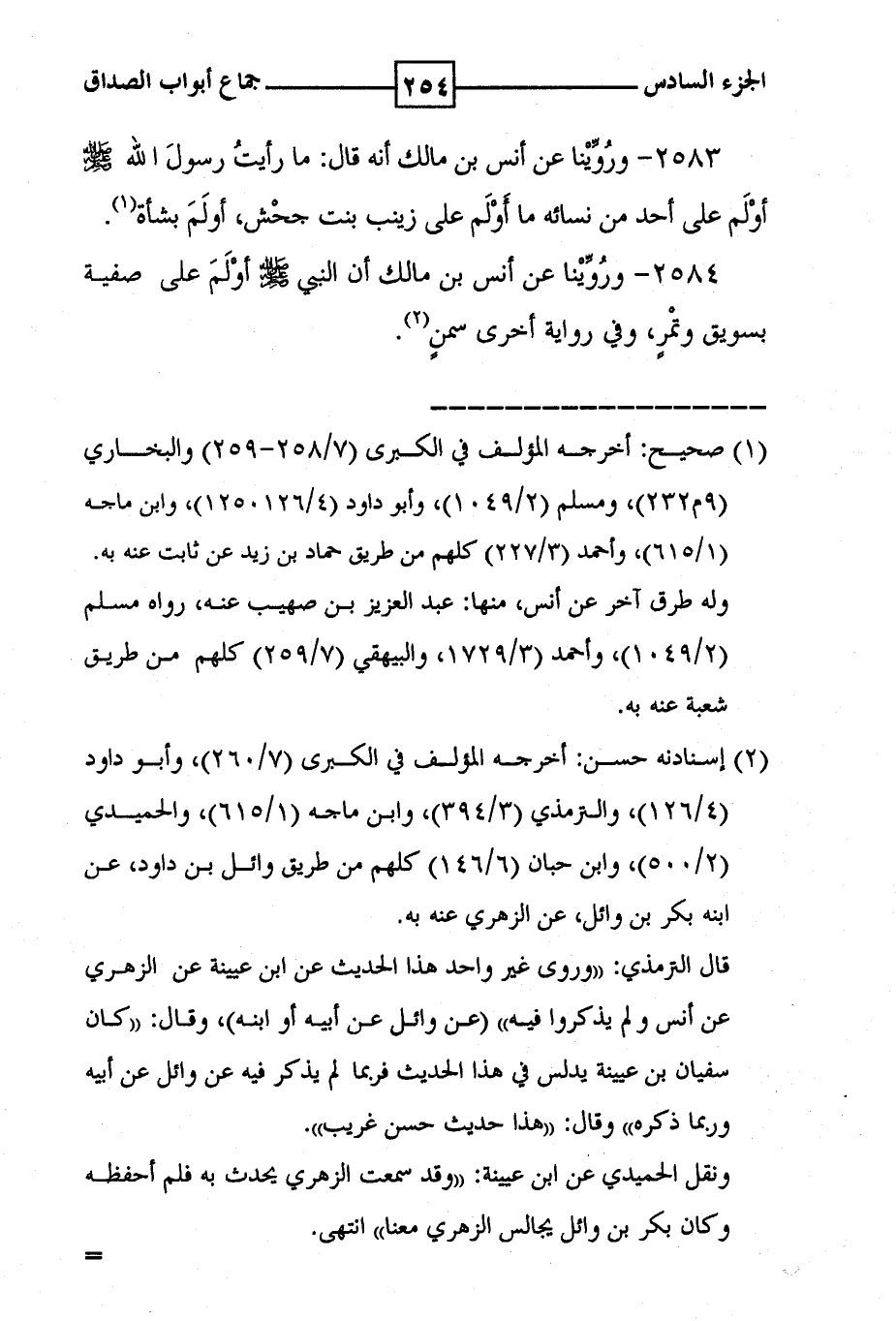 2584 - وروينا عن أنس بن مالك أن النبي صلى الله عليه وسلم أولم على صفية بسويق وتمر ، وفي رواية أخرى سمن ( 2 ) .