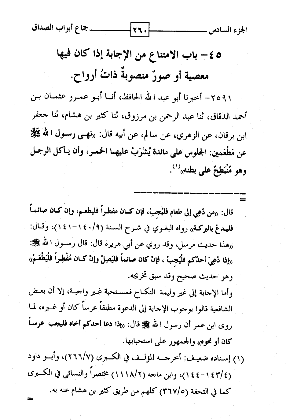 45 - باب الامتناع من الإجابة إذا كان فيها معصية أو صور منصوبة ذات أرواح