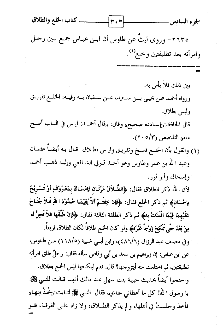 2635 - وروى ليث عن طاوس أن ابن عباس جمع بين رجل وامرأته بعد تطليقتين وخلع ( 1 ) .