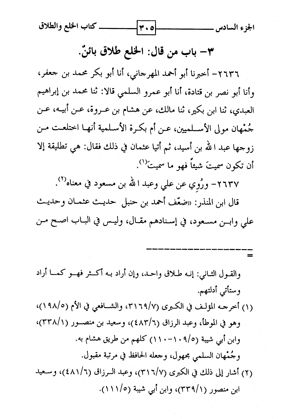 2636 - أخبرنا أبو أحمد المهرجاني ، أنا أبو بكر محمد بن جعفر ، وأنا أبو نصر بن قتادة ، أنا أبو عمرو السلمي قالا : ثنا محمد بن إبراهيم العبدي ، ثنا ابن بكير ، ثنا مالك ، عن هشام بن عروة ، عن ابيه ، عن جمهان مولى الاسلميين ، عن أم بكرة الاسلمية انها اختلعت من زوجها عبد الله بن اسيد ، ثم أتيا عثمان في ذلك فقال : هي تطليقة إلا أن تكون سميت شيئا فهو ما سميت ( 1 ) .