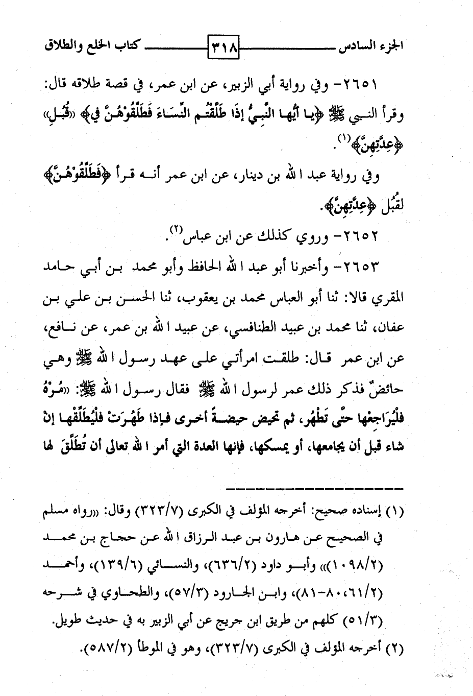 2653 - واخبرنا أبو عبد الله الحافظ وأبو محمد بن أبي حامد المقري قالا : ثنا أبو العباس محمد بن يعقوب ، ثنا الحسن بن علي بن عفان ، ثنا محمد بن عبيد الطنافسي ، عن عبيد الله بن عمر ، عن نافع ، عن ابن عمر قال : طلقت امرأتي على عهد رسول الله صلى الله عليه وسلم وهي حائض فذكر ذلك عمر لرسول الله صلى الله عليه وسلم فقال رسول الله صلى الله عليه وسلم : ' مره فليراجعها حتى تطهر ، ثم تحيض حيضة أخرى فإذا طهرت فليطلقها إن شاء قبل أن يجامعها ، أو يمسكها ، فإنها العدة التي أمر الله تعالى أن تطلق لها