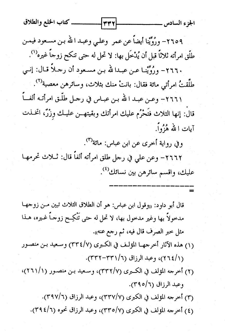 2660 - وروينا عن عبد الله بن مسعود أن رجلا قال : إني طلقت امرأتي مائة فقال : بانت منك بثلاث ، وسائرهن معصية ( 2 ) .