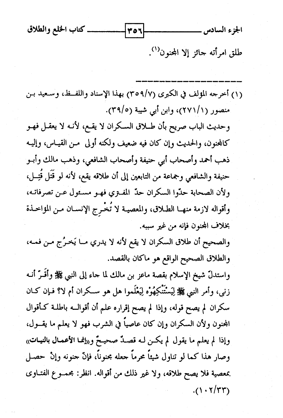 طلق امرأته جائز إلا المجنون ( 1 ) .