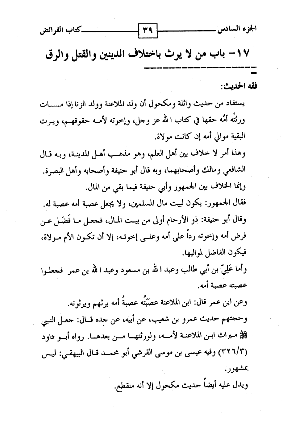17 - باب من لا يرث باختلاف الدينين والقتل والرق