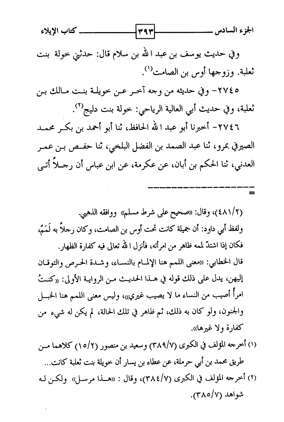 2745 - وفي حديثه من وجه آخر عن خويلة بنت مالك بن ثعلبة ، وفي حديث أبي العالية الرياحي : خولة بنت دليج ( 2 ) .