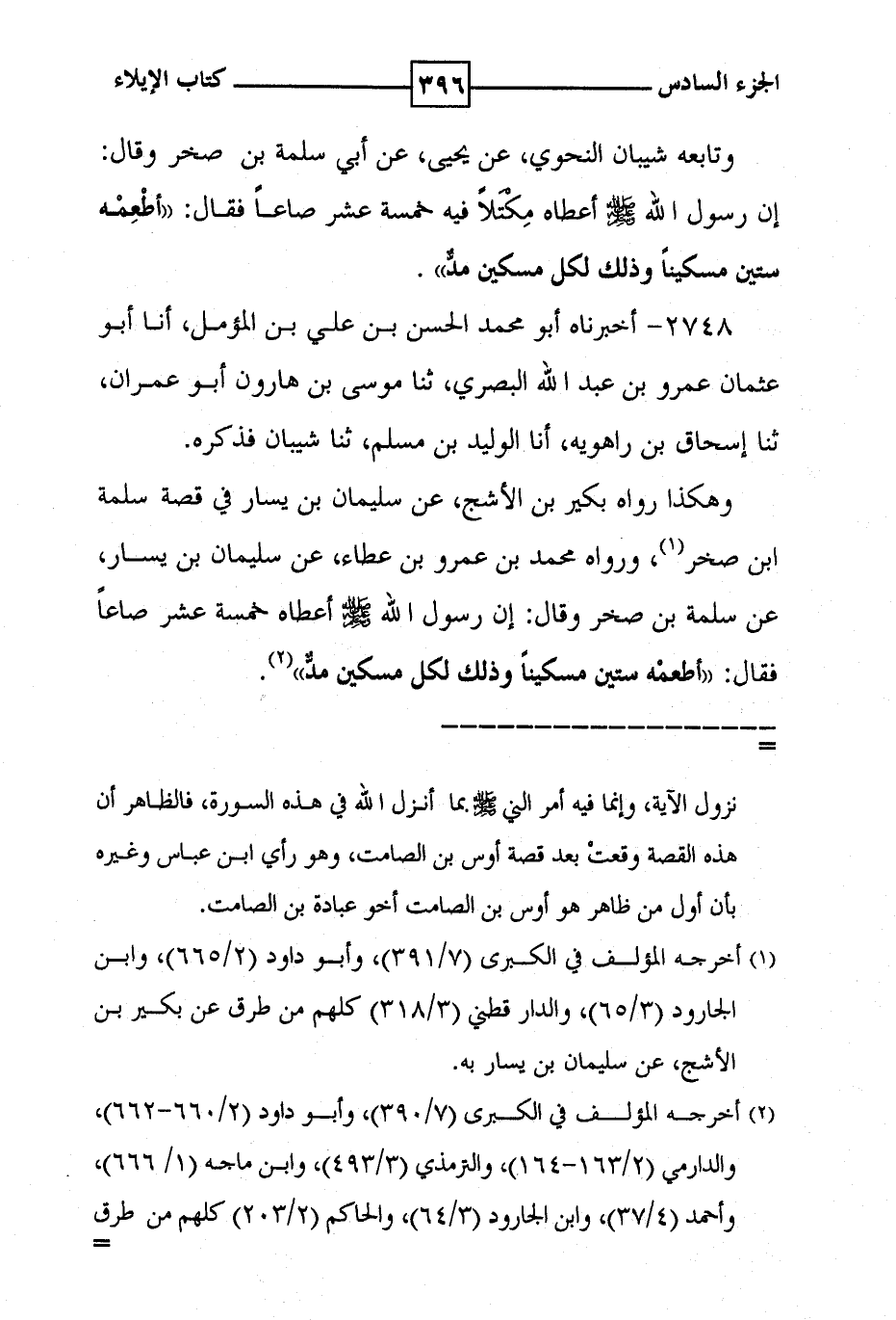 2748 - أخبرناه أبو محمد الحسن بن علي بن المؤمل ، أنا أبو عثمان عمرو بن عبد الله البصري ، ثنا موسى بن هارون أبو عمران ، ثنا إسحاق بن راهويه ، أنا الوليد بن مسلم ، ثنا شيبان فذكره . وهكذا رواه بكير بن الاشج ، عن سليمان بن يسار في قصة سلمة ابن صخر ( 1 ) ، ورواه محمد بن عمرو بن عطاء ، عن سليمان بن يسار ، عن سلمة بن صخر وقال : إن رسول الله صلى الله عليه وسلم أعطاه خمسة عشر صاعا فقال : ' اطعمه ستين مسكينا وذلك لكل مسكين مد ' ( 2 ) .