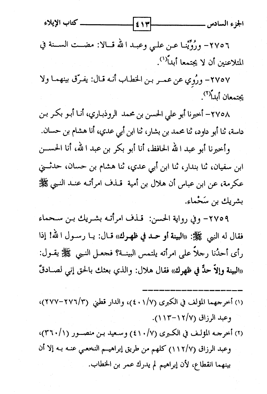 2758 - أخبرنا أبو علي الحسن بن محمد الروذباري ، أنا أبو بكر بن داسة ، ثنا أبو داود ، ثنا محمد بن بشار ، ثنا ابن أبي عدي ، أنا هشام بن حسان . وأخبرنا أبو عبد الله الحافظ ، أنا أبو بكر بن عبد الله ، أنا الحسن ابن سفيان ، ثنا بندار ، ثنا ابن أبي عدي ، ثنا هشام بن حسان ، حدثني عكرمة ، عن ابن عباس أن هلال بن أمية قذف امرأته عن النبي صلى الله عليه وسلم بشريك بن سحماء .