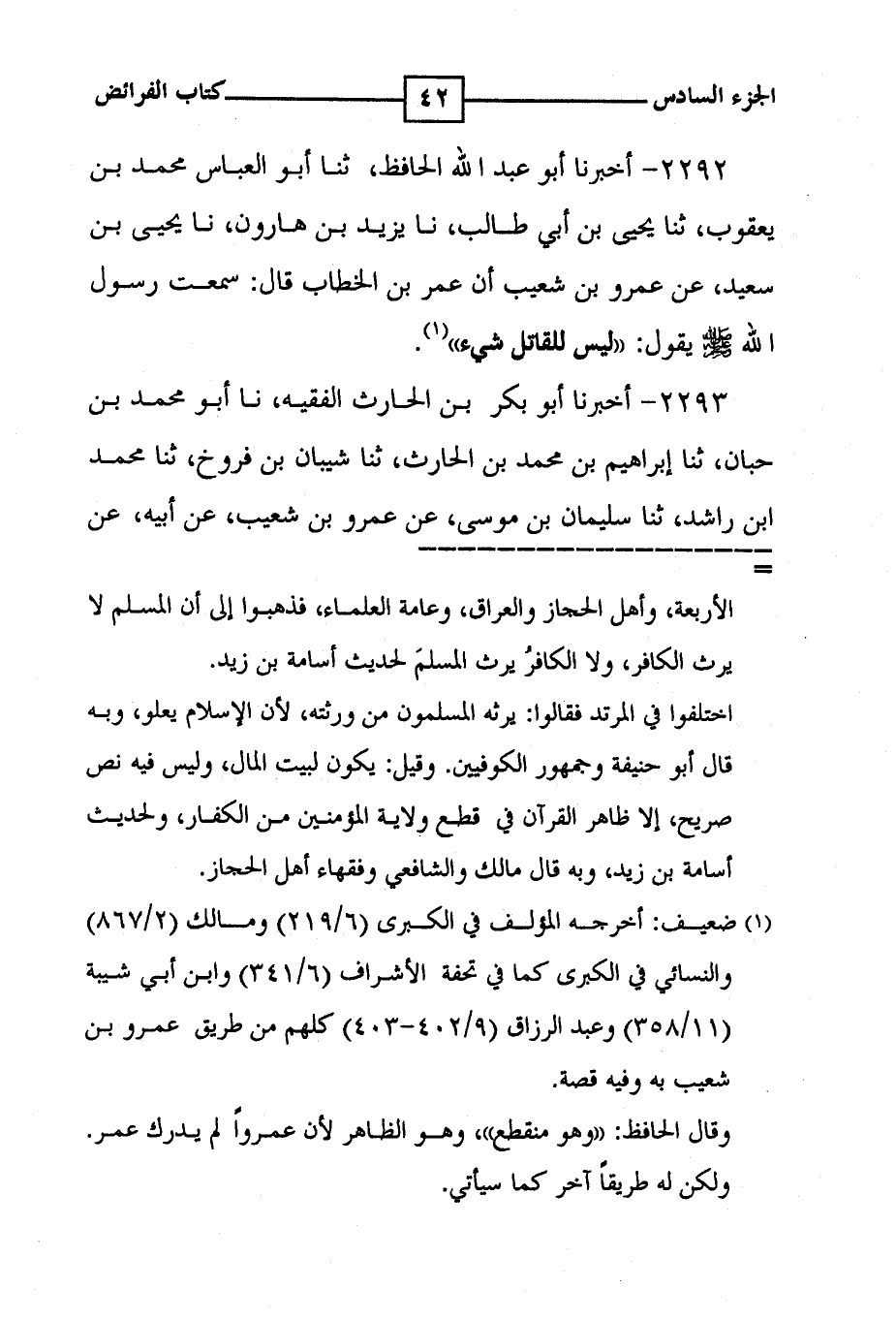 2292 - أخبرنا أبو عبد الله الحافظ ، ثنا أبو العباس محمد بن يعقوب ، ثنا يحيى بن أبي طالب ، نا يزيد بن هارون ، نا يحيى بن سعيد ، عن عمرو بن شعيب أن عمر بن الخطاب قال : سمعت رسول الله صلى الله عليه وسلم يقول : ' ليس للقاتل شيء ' ( 1 ) .