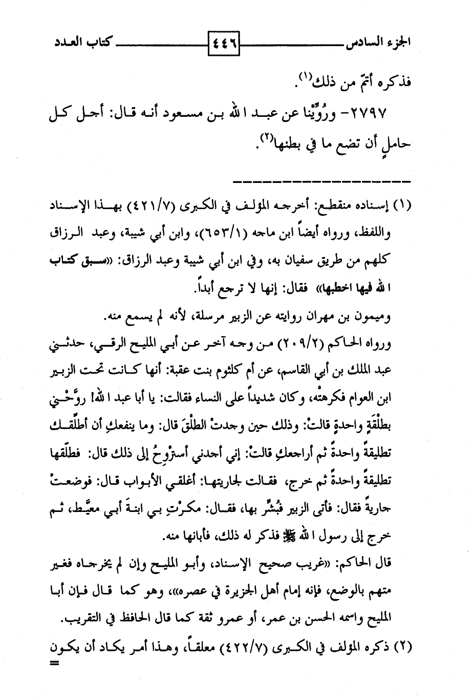 2797 - وروينا عن عبد الله بن مسعود انه قال : اجل كل حامل أن تضع ما في بطنها ( 2 ) .