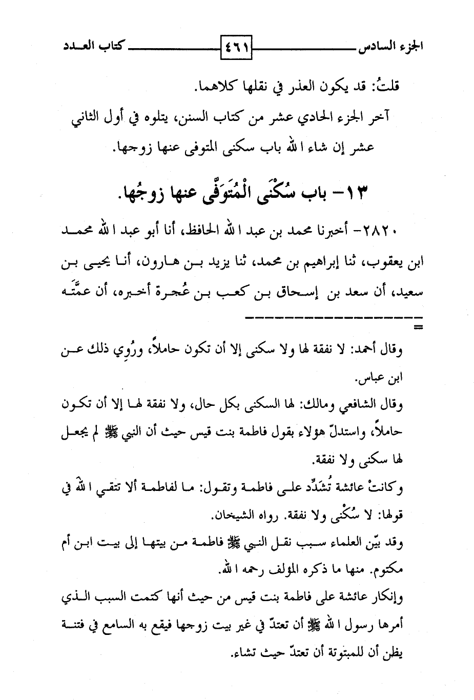 قلت : قد يكون العذر في نقلها كلاهما . آخر الجزء الحادي عشر من كتاب السنن ، يتلوه في أول الثاني عشر إن شاء الله باب سكنى المتوفى عنها زوجها . 13 - باب سكنى المتوفى عنها زوجها
