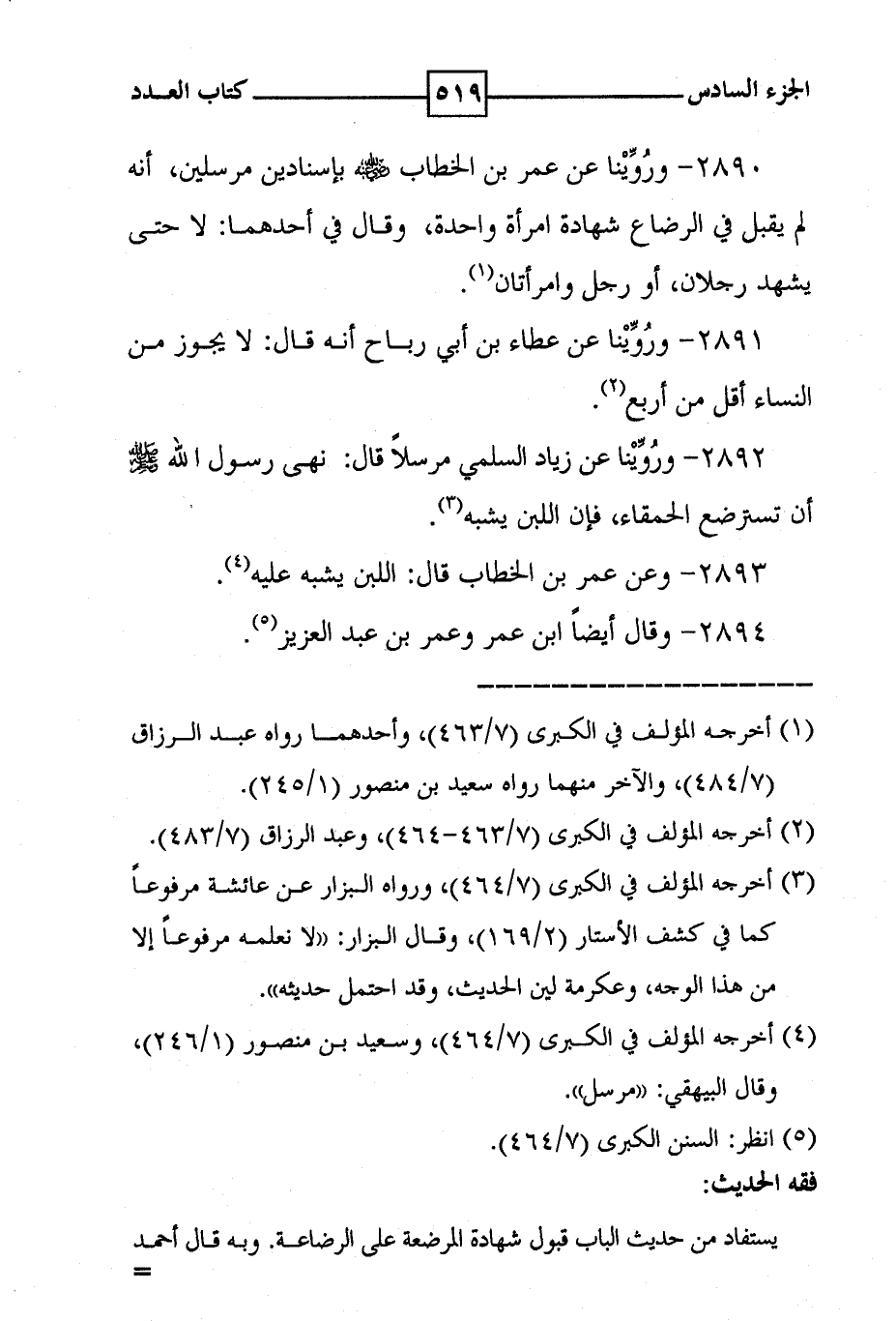 2891 - وروينا عن عطاء بن أبي رباح انه قال : لا يجوز من النساء أقل من أربع ( 2 ) .