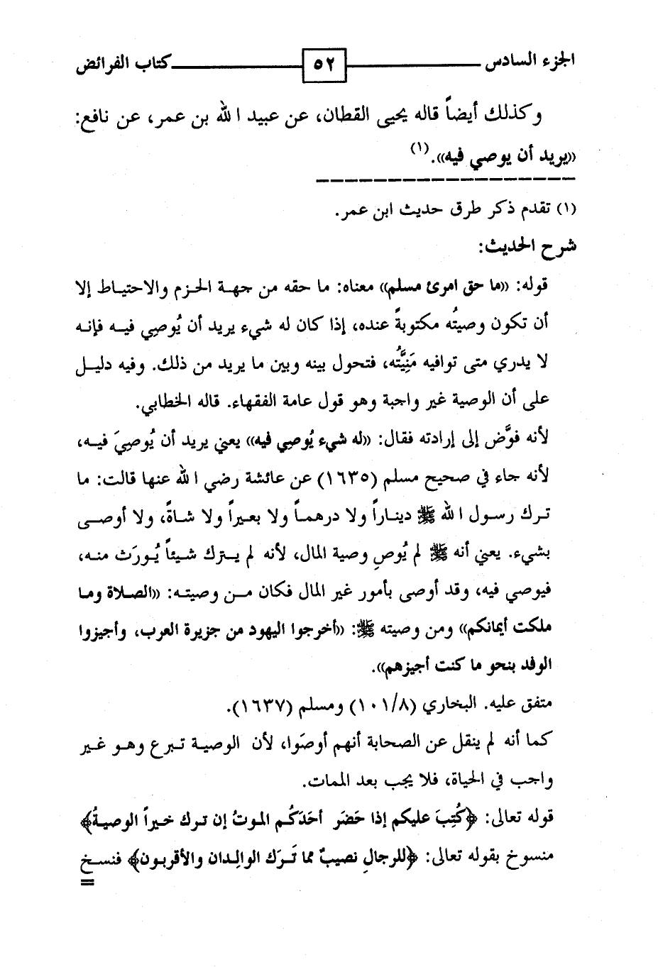 وكذلك أيضاً قاله يحيى القطان ، عن عبيد الله بن عمر ، عن نافع : ' يريد أن يوصي فيه ' ( 1 ) .
