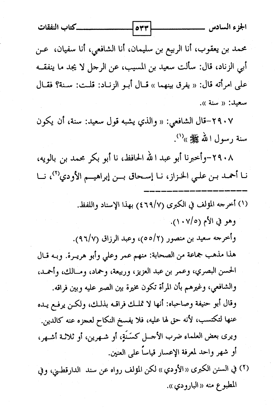 2907 - قال الشافعي : ' والذي يشبه قول سعيد : سنة ، أن يكون سنة رسول الله صلى الله عليه وسلم ' ( 1 ) .