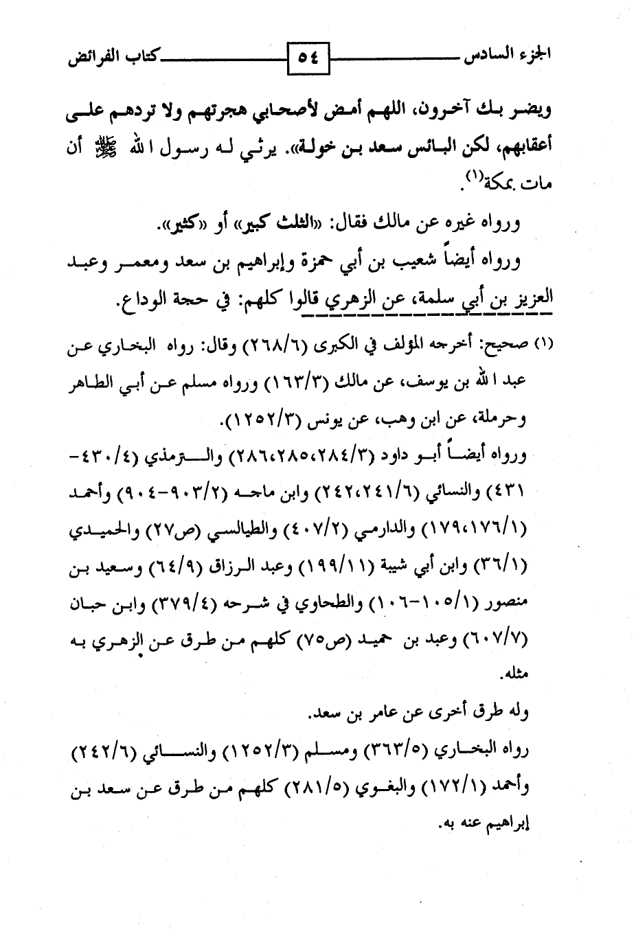 ويضر بك آخرون ، اللهم امض لأصحابي هجرتهم ولا تردهم على اعقابهم ، لكن البائس سعد بن خولة ' . يرثي له رسول الله صلى الله عليه وسلم أن مات بمكة ( 1 ) . ورواه غيره عن مالك فقال : ' الثلث كبير ' أو ' كثير ' . ورواه أيضا شعيب بن أبي حمزة وإبراهيم بن سعد ومعمر وعبد العزيز بن أبي سلمة ، عن الزهري قالوا كلهم : في حجة الوداع .