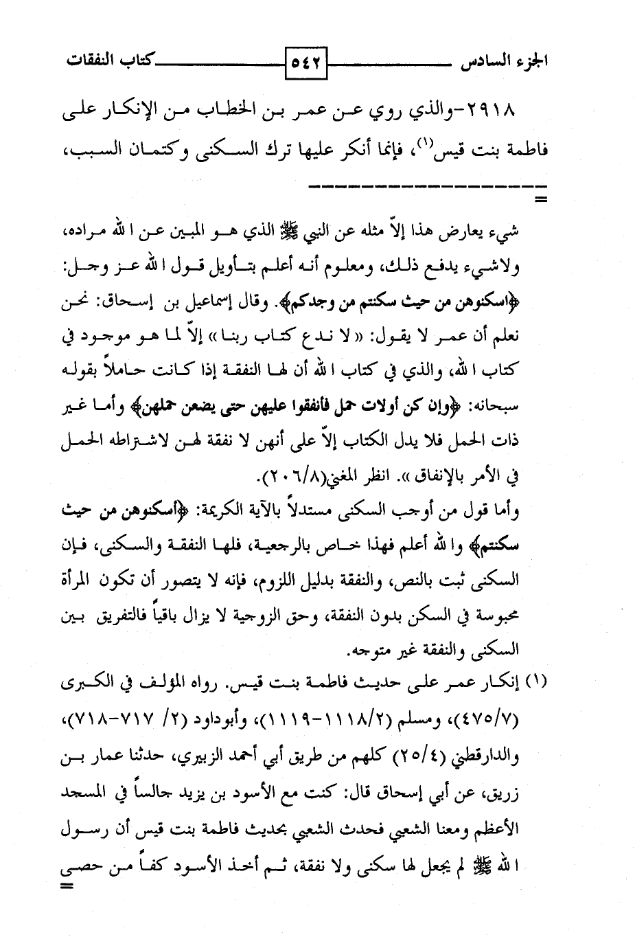 2918 - والذي روي عن عمر بن الخطاب من الانكار على فاطمة بنت قيس ( 1 ) ، فإنما أنكر عليها ترك السكنى وكتمان السبب ،