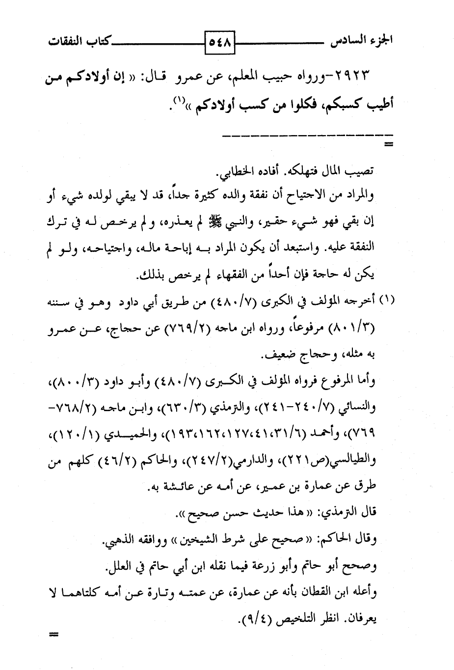 2923 - ورواه حبيب المعلم ، عن عمرو ، قال : ' إن اولادكم من أطيب كسبكم ، فكلوا من كسب اولادكم ' ( 1 ) .