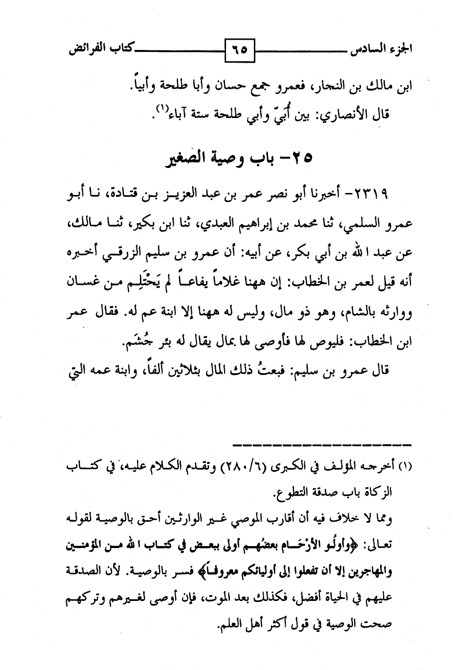 ابن مالك بن النجار ، فعمرو جمع حسان وابا طلحة وأبيا . قال الأنصاري : بين أبي وأبي طلحة ستة آباء ( 1 ) . 25 - باب وصية الصغير