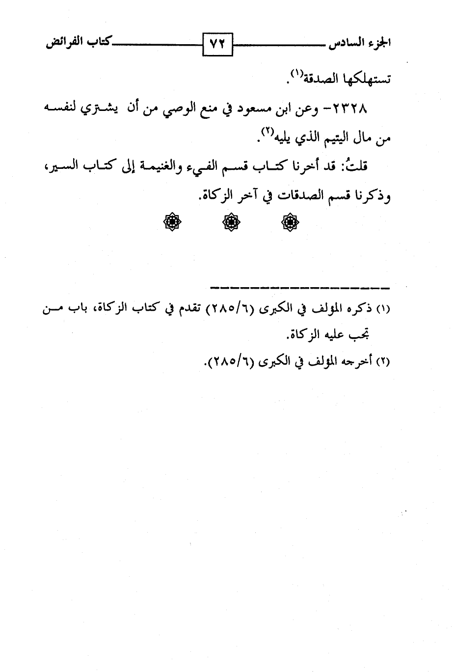 2328 - وعن ابن مسعود في منع الوصي من أن يشتري لنفسه من مال اليتيم الذي يليه ( 2 ) . قلت : قد اخرنا كتاب قسم الفيء والغنيمة إلى كتاب السير ، وذكرنا قسم الصدقات في آخر الزكاة . * * *