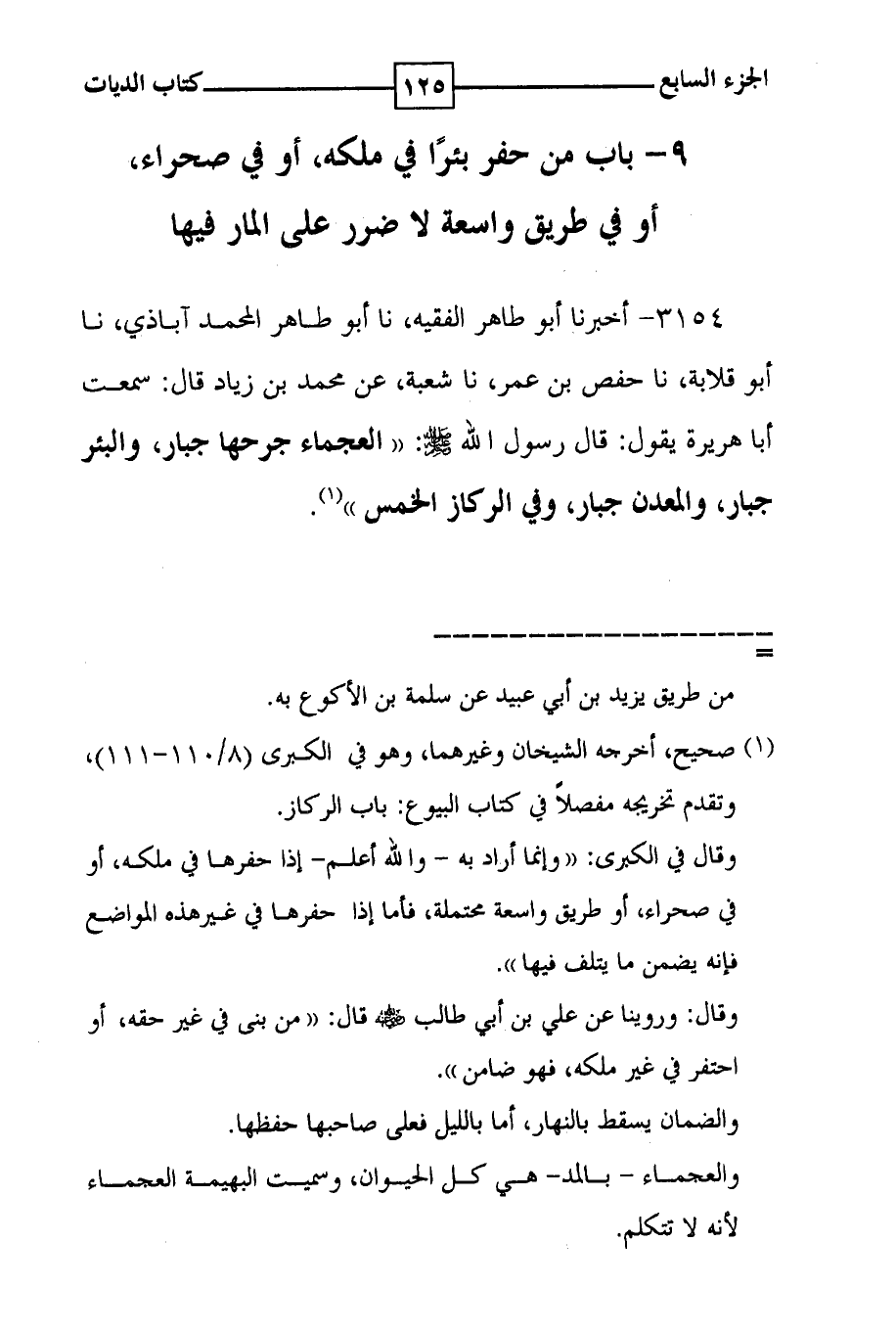 9 - باب من حفر بئراً في ملكه ، أو في صحراء ، أو في طريق واسعة لا ضرر على المار فيها