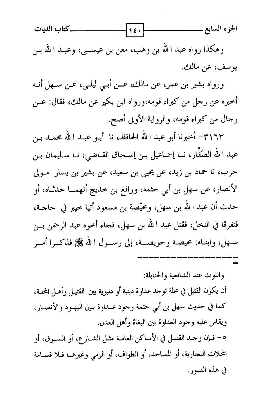 3163 - أخبرنا أبو عبد الله الحافظ ، نا أبو عبد الله محمد بن عبد الله الصفار ، نا إسماعيل بن إسحاق القاضي ، نا سليمان بن حرب ، نا حماد بن زيد ، عن يحيى بن سعيد ، عن بشير بن يسار مولى الأنصار ، عن سهل بن أبي حثمة ، ورافع بن خديج أنهما حدثاه ، أو حدث أن عبد الله بن سهل ، ومحيصة بن مسعود أتيا خيبر في حاجة ، فتفرقا في النخل ، فقتل عبد الله بن سهل ، فجاء أخوه عبد الرحمن بن سهل ، وابناه : محيصة وحويصة ، إلى رسول الله صلى الله عليه وسلم فذكر أمر
