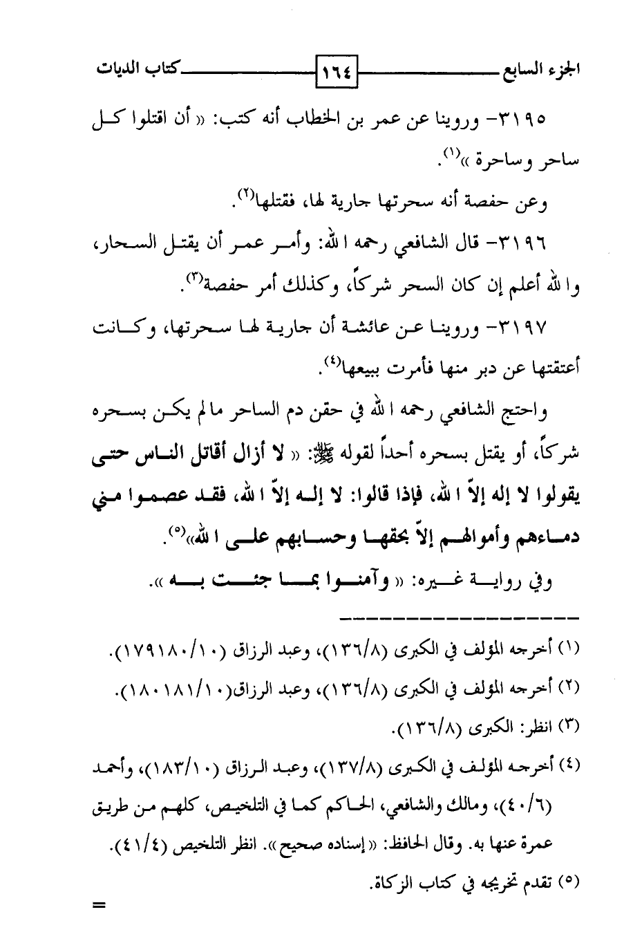 3196 - قال الشافعي رحمه الله : وأمر عمر أن يقتل السحار ، والله أعلم إن كان السحر شركاً ، وكذلك أمر حفصة ( 3 ) .