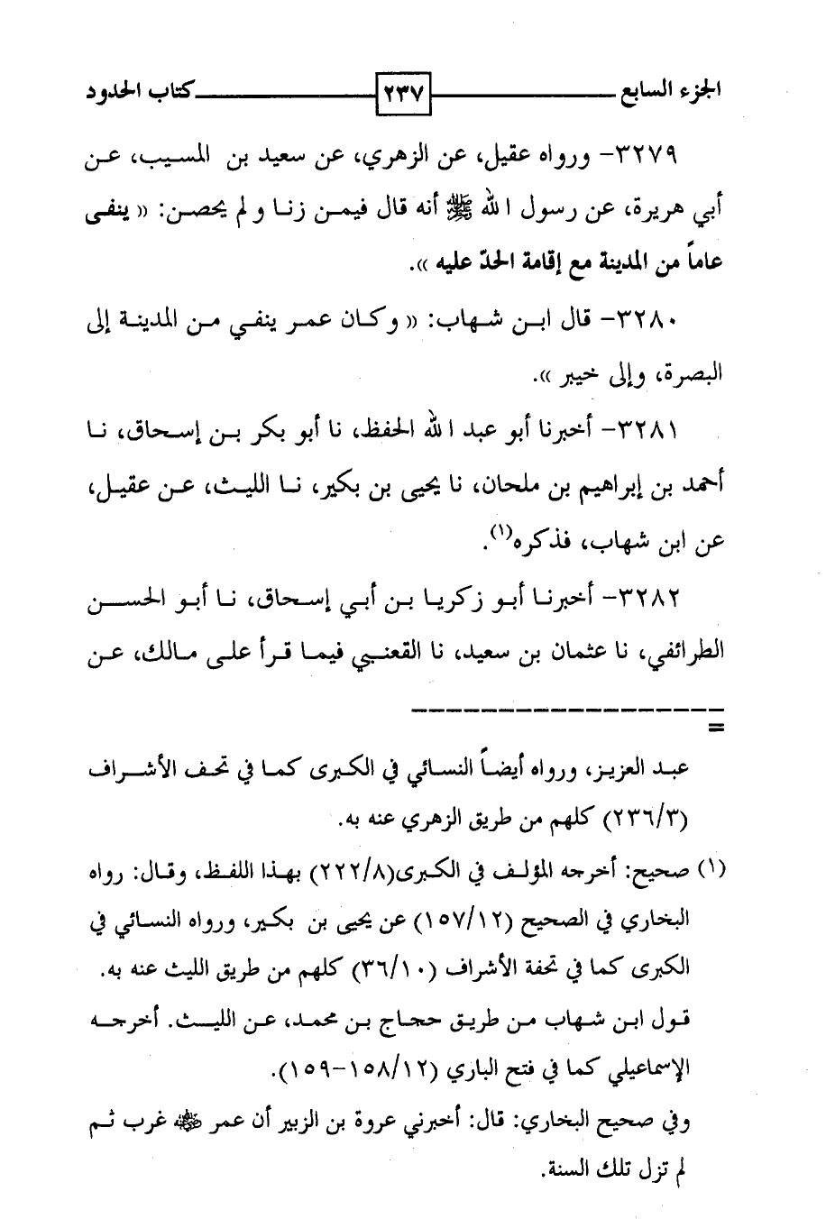 3280 - قال ابن شهاب : ( ( وكان عمر ينفي من المدينة إلى البصرة ، وإلى خيبر ) ) .