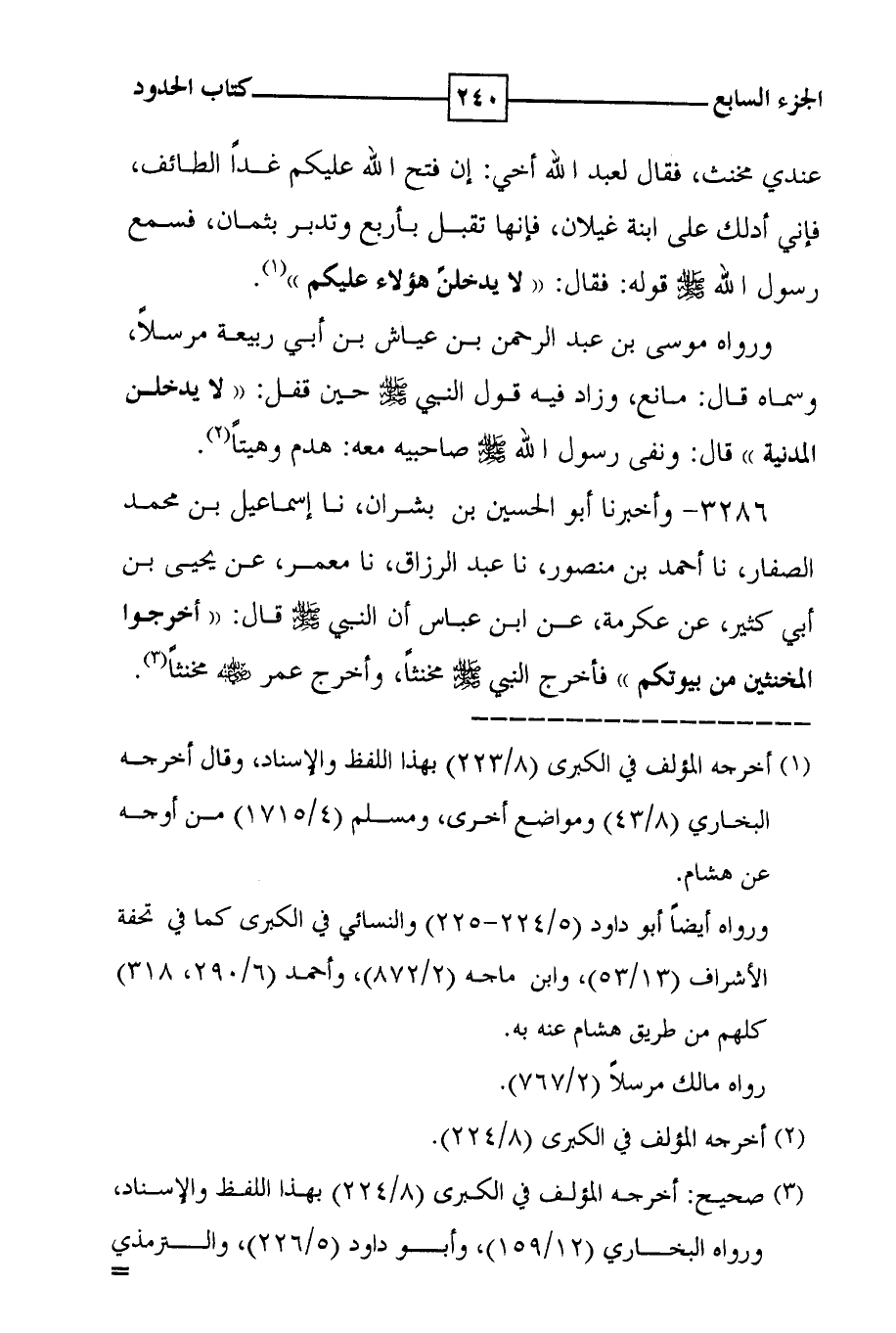 3286 - وأخبرنا أبو الحسين بن بشران ، نا إسماعيل بن محمد الصفار ، نا أحمد بن منصور ، نا عبد الرزاق ، نا معمر ، عن يحيى بن أبي كثير ، عن عكرمة ، عن ابن عباس أن النبي صلى الله عليه وسلم قال : ( ( أخرجوا المخنثين من بيوتكم ) ) فأخرج النبي صلى الله عليه وسلم مخنثاً ، وأخرج عمر صلى الله عليه وسلم مخنثاً ( 3 ) .