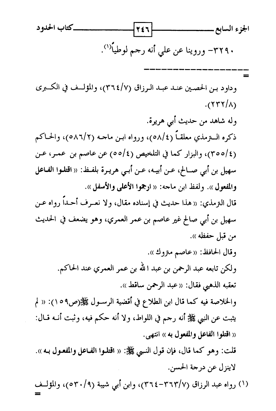 3290 - وروينا عن علي أنه رجم لوطياً . ( 1 ) .