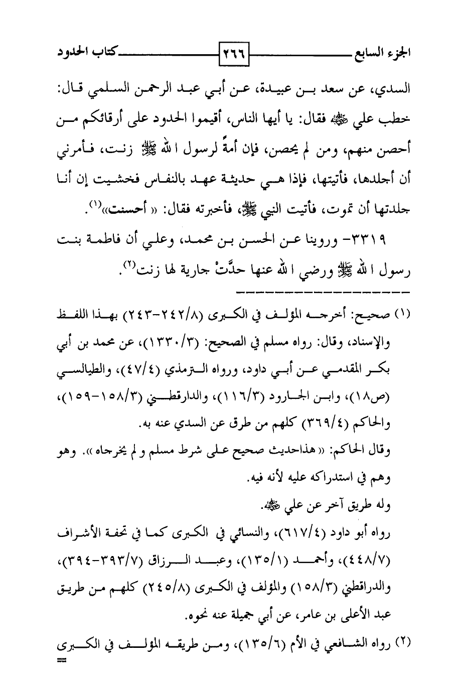3319 - وروينا عن الحسن بن محمد ، وعلي أن فاطمة بنت رسول الله صلى الله عليه وسلم ورضي الله عنها حدث جارية لها زنت ( 2 ) .