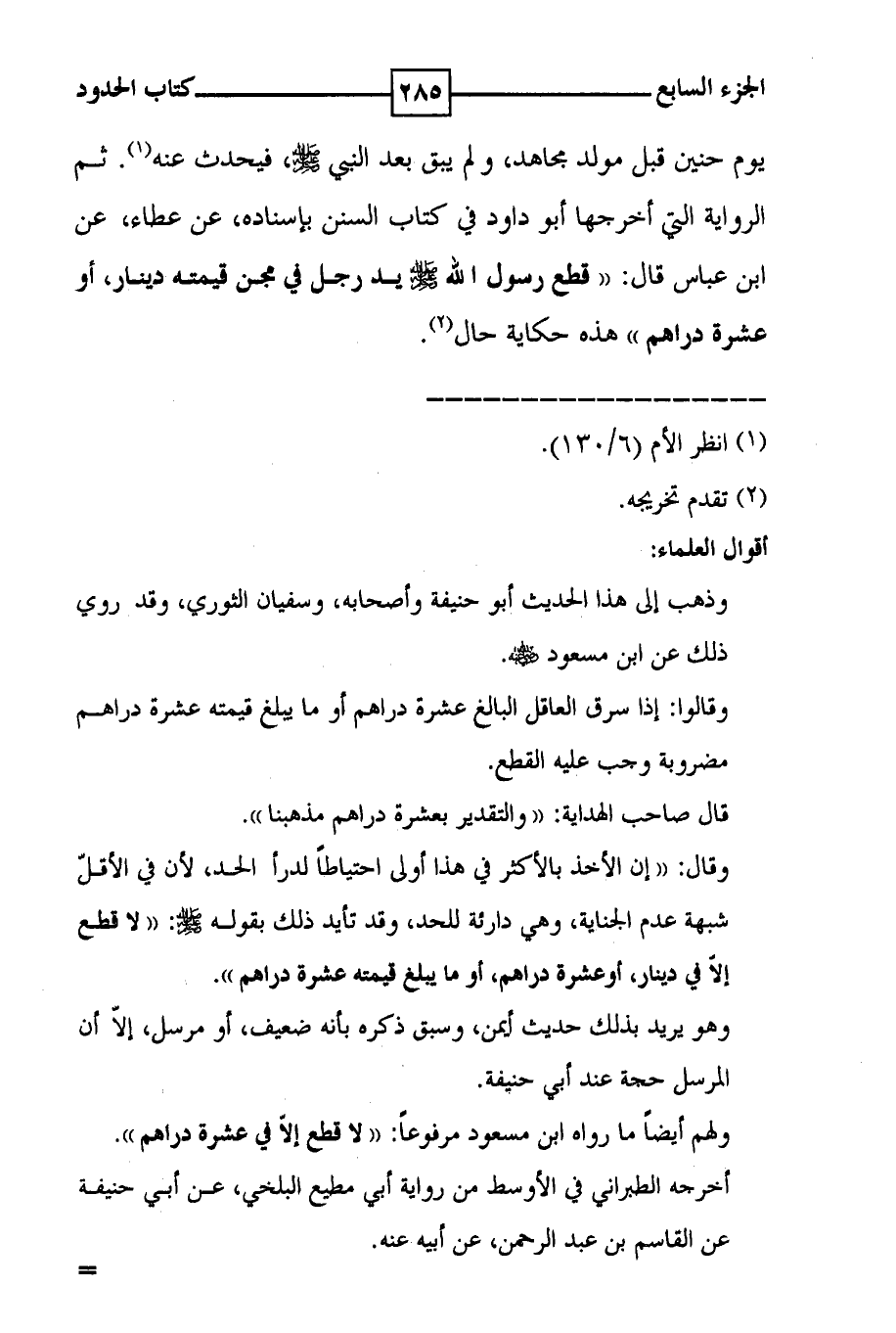 يوم حنين قبل مولد مجاهد ، ولم يبق بعد النبي صلى الله عليه وسلم ، فيحدث عنه ( 1 ) . ثم الرواية التي أخرجها أبو داود في كتاب السنن بإسناده ، عن عطاء ، عن ابن عباس قال : ( ( قطع رسول الله صلى الله عليه وسلم يد رجل في مجن قيمته دينار ، أو عشرة دراهم ) ) هذه حكاية حال ( 2 ) .