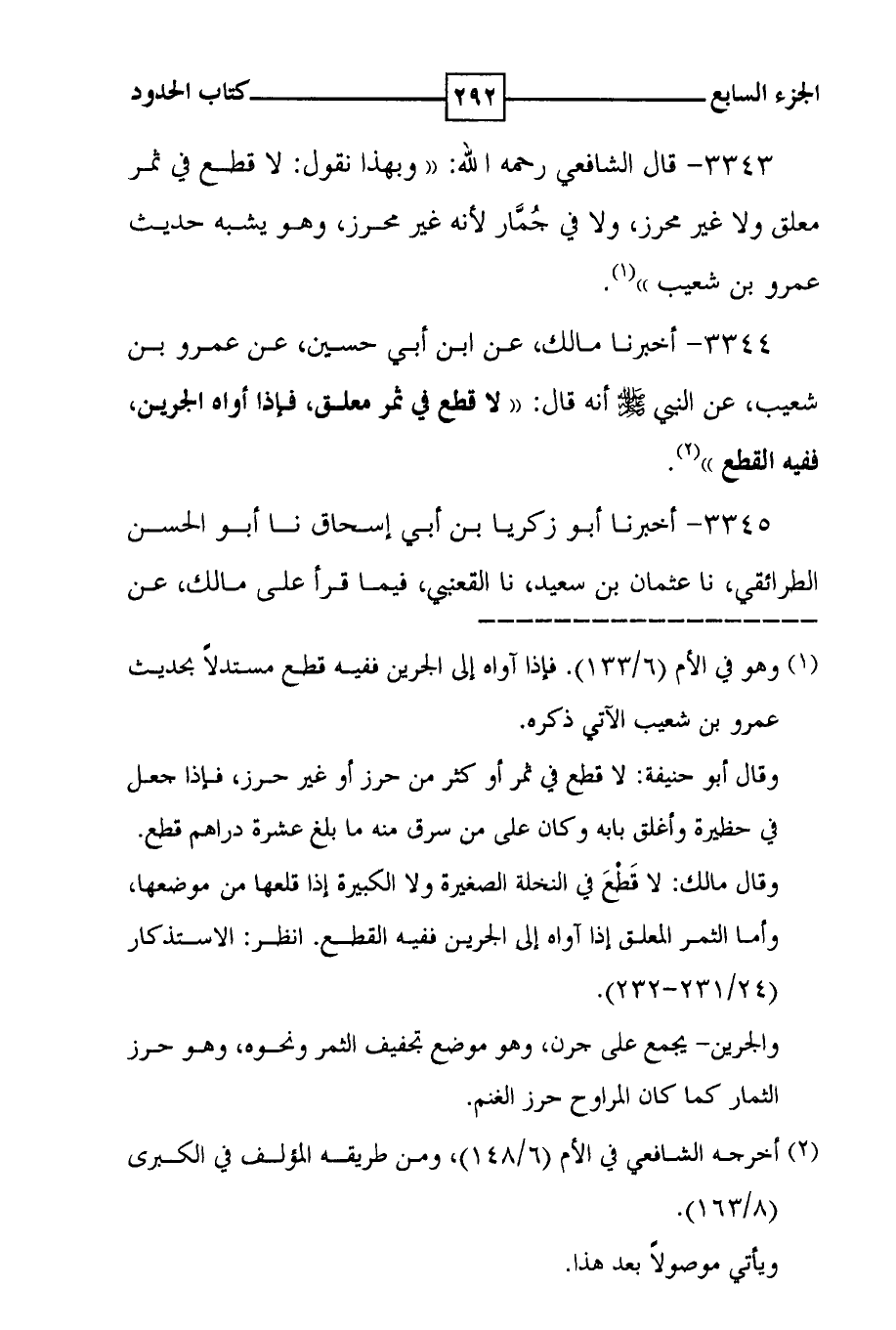 3343 - قال الشافعي رحمه الله : ( ( وبهذا نقول : لا قطع في ثمر معلق ولا غير محرز ، ولا في جمار لأنه غير محرز ، وهو يشبه حديث عمرو بن شعيب ) ) ( 1 ) .