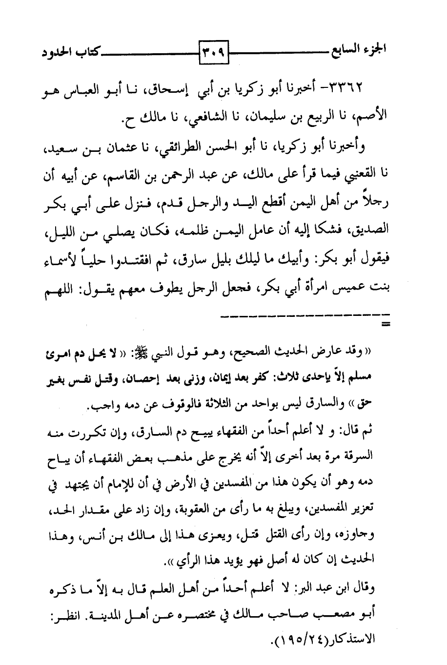 3362 - أخبرنا أبو زكريا بن أبي إسحاق ، نا أبو العباس هو الأصم ، نا الربيع بن سليمان ، نا الشافعي ، نا مالك ح . وأخبرنا أبو زكريا ، نا أبو الحسن الطرائقي ، نا عثمان بن سعيد ، نا القعنبي فيما قرأ على مالك ، عن عبد الرحمن بن القاسم ، عن أبيه أن رجلا من أهل اليمن أقطع اليد والرجل قدم ، فنزل على أبي بكر الصديق ، فشكا إليه أن عامل اليمن ظلمه ، فكان يصلي من الليل ، فيقول أبو بكر : وأبيك ما ليلك بليل سارق ، ثم افقتدوا حلياً لأسماء بنت عميس امرأة أبي بكر ، فجعل الرجل يطوف معهم يقول : ( ( اللهم
