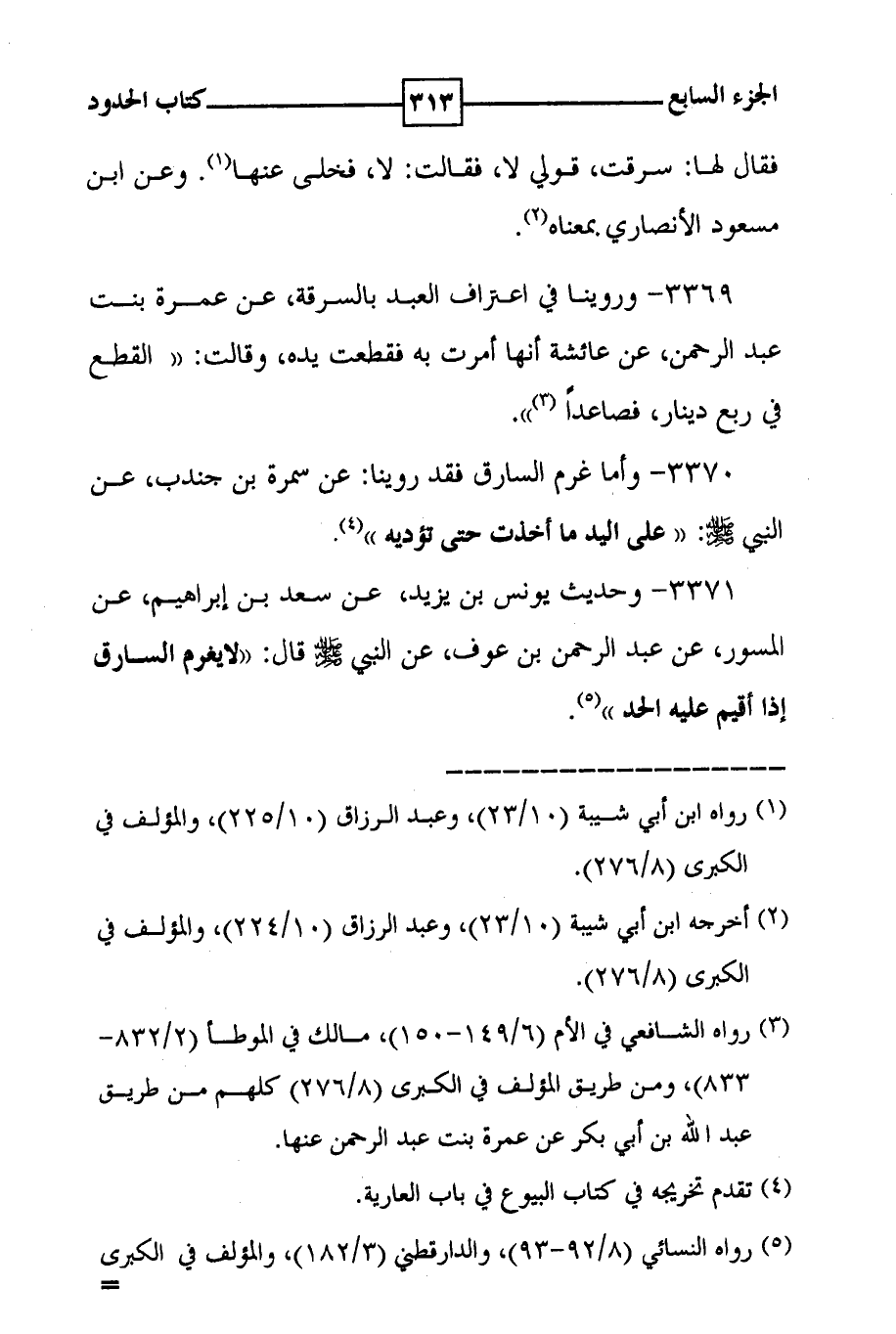 3371 - وحديث يونس بن يزيد ، عن سعد بن إبراهيم ، عن المسور ، عن عبد الرحمن بن عوف ، عن النبي صلى الله عليه وسلم قال : ( ( لا يغرم السارق إذا أقيم عليه الحد ) ) ( 5 ) .