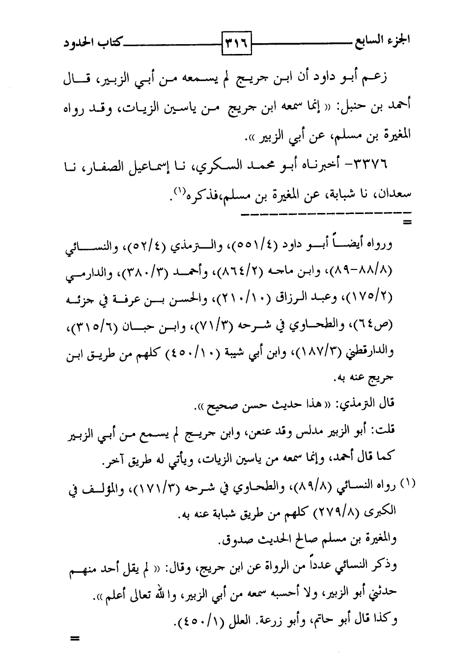 زعم أبو داود أن ابن جريج لم يسمعه من أبي الزبير ، قال أحمد بن حنبل : ( ( إنما سمعه ابن جريج من ياسين الزيات ، وقد رواه المغيرة بن مسلم ، عن أبي الزبير ) ) .