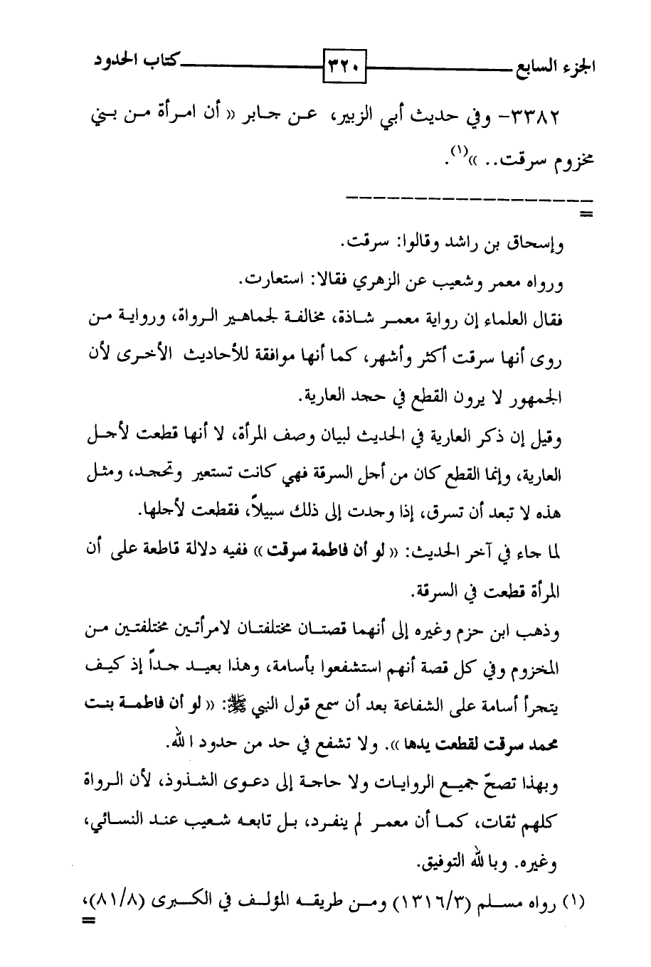 3382 - وفي حديث أبي الزبير ، عن جابر ( ( أن امرأة من بني مخزوم سرقت . . . . ) ) ( 1 ) .